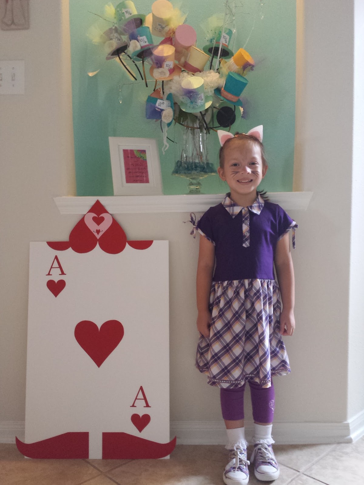 No Madhatter Tea Pary would be complete without top hats. I made these top hats using my Silhouette and a cut file from the Silhouette store for a 3D leprechaun hat. You may recognize the stand as party of my centerpiece from the Breakfast at Tiffany's party. I looked for ways to display the hats in a box or something but the headbands and the bulkiness of the top hats made them fall over. I finally gave up and just put them on the branches...an accidental good idea. The frame has a quote from the movie. It is the exchange between the Madhatter and Alice. He asks if he has gone mad and she says yes but all the great ones are.